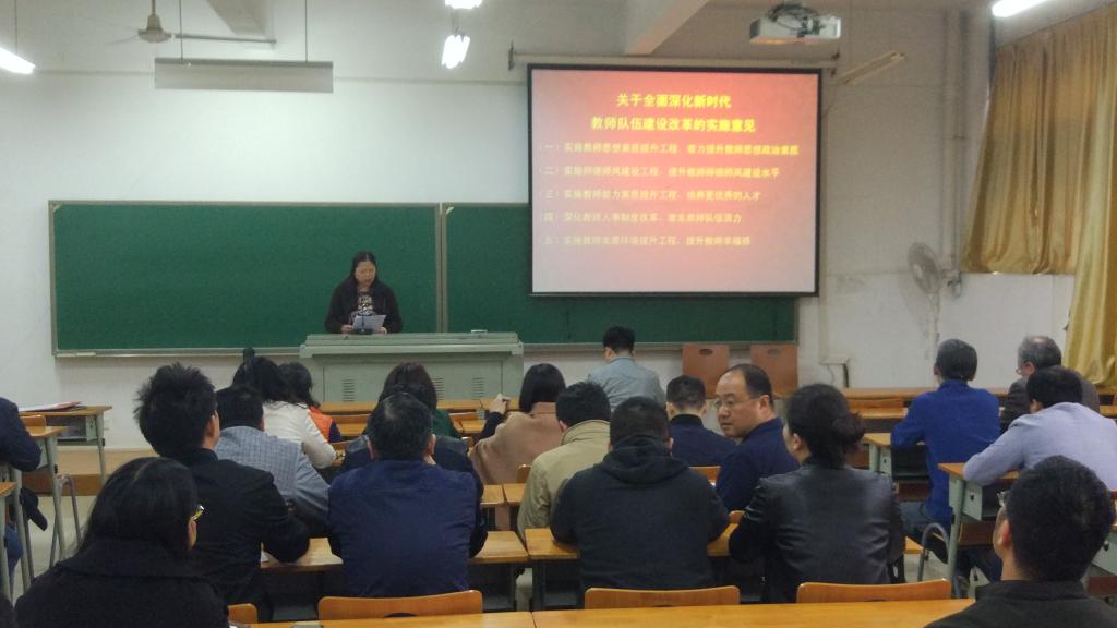 会上,党委书记樊敏带领大家共同学习了两个文件。她强调,全体教师要认真学习实施意见,要以德立身、以德立学、以德施教、以德育德,坚持教书和育人相统一、言传和身教相统一、潜心问道和关注社会相统一、学术自由和学术规范相统一,争做有理想信念、有道德情操、有扎实学识、有仁爱之心的好老师,全心全意做学生锤炼品格、学习知识、创新思维、奉献祖国的引路人。她指出,在以后的工作中,学院也将认真查找教师队伍建设和师德师风建设方面的突出问题和薄弱环节,按照学校文件制定的工作举措,进一步加强和改进教师队伍建设、师德师风建设。
