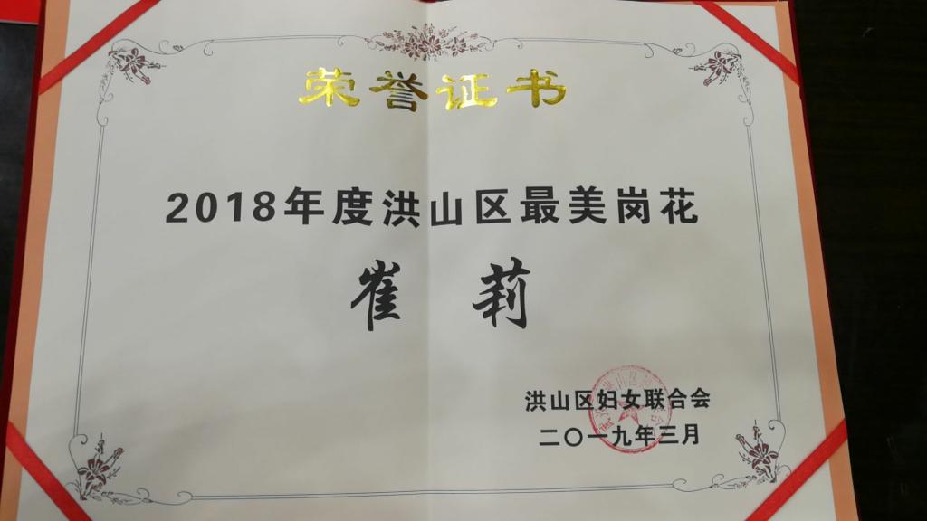51暗网 分工会主席崔莉教授被评为“2018年度洪山区最美岗花”