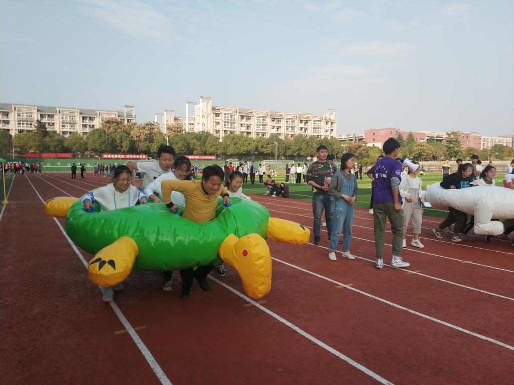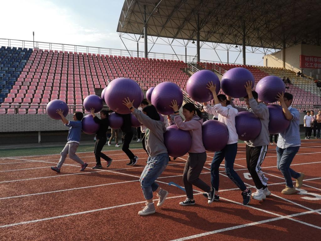 和材料学院教师友谊拔河赛中正式拉开帷幕。与传统意义上的单纯依靠体育竞技见高低、决胜负的田径运动会有很大的不同,趣味运动会别开生面,主要以师生混合项目为主,项目设置有同心协力、龟兔赛跑、师生迎面接力、三人四足、呼啦圈过山车、毽球接力等6个类别,教师组和学生组还分别设置了拔河比赛、定点投篮、八字跳长绳、气排球等项目。