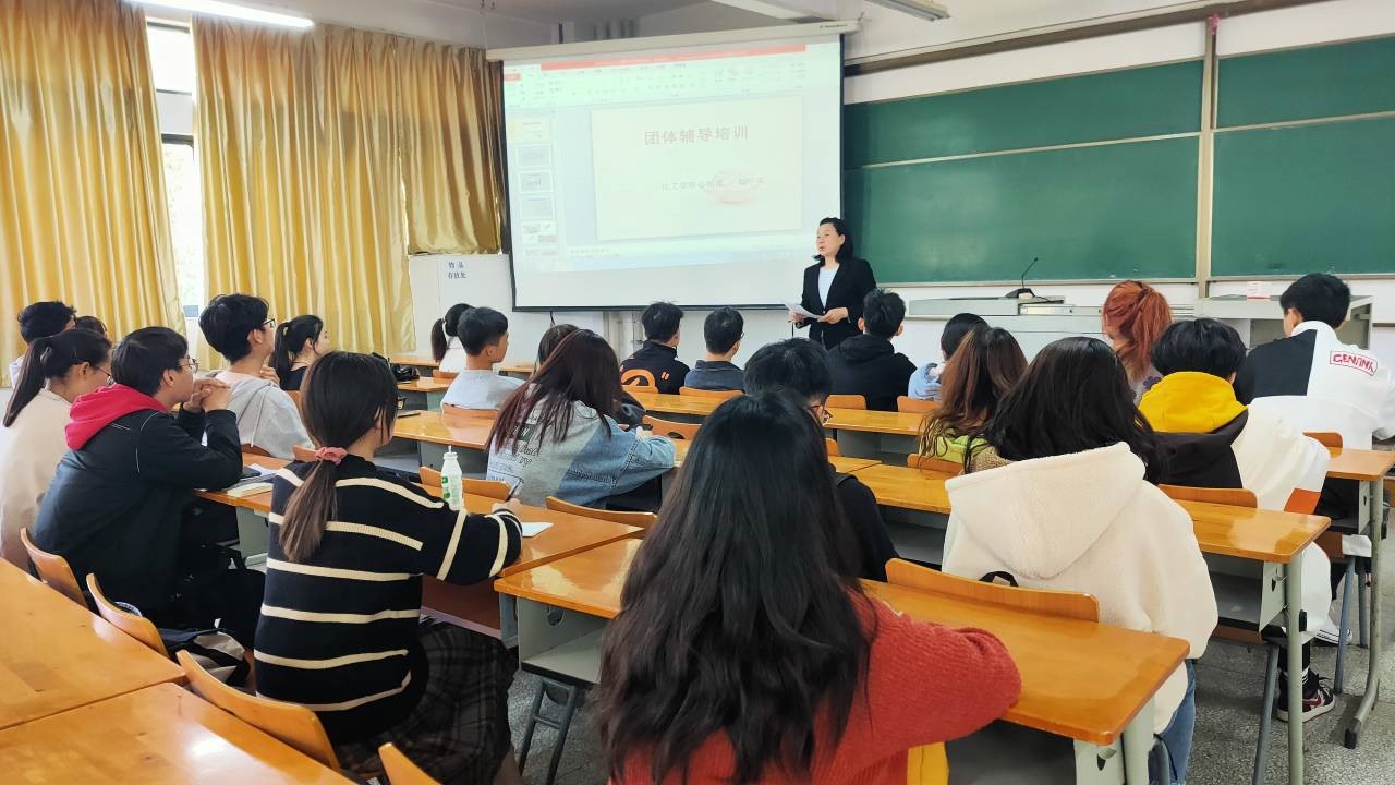 “化”心家园团辅建设研究小组团队主持人、国家高级心理咨询师胡子英老师,围绕“大学生班级团体辅导如何支持疫后心理重建”主题,对全院心理委员进行培训。
