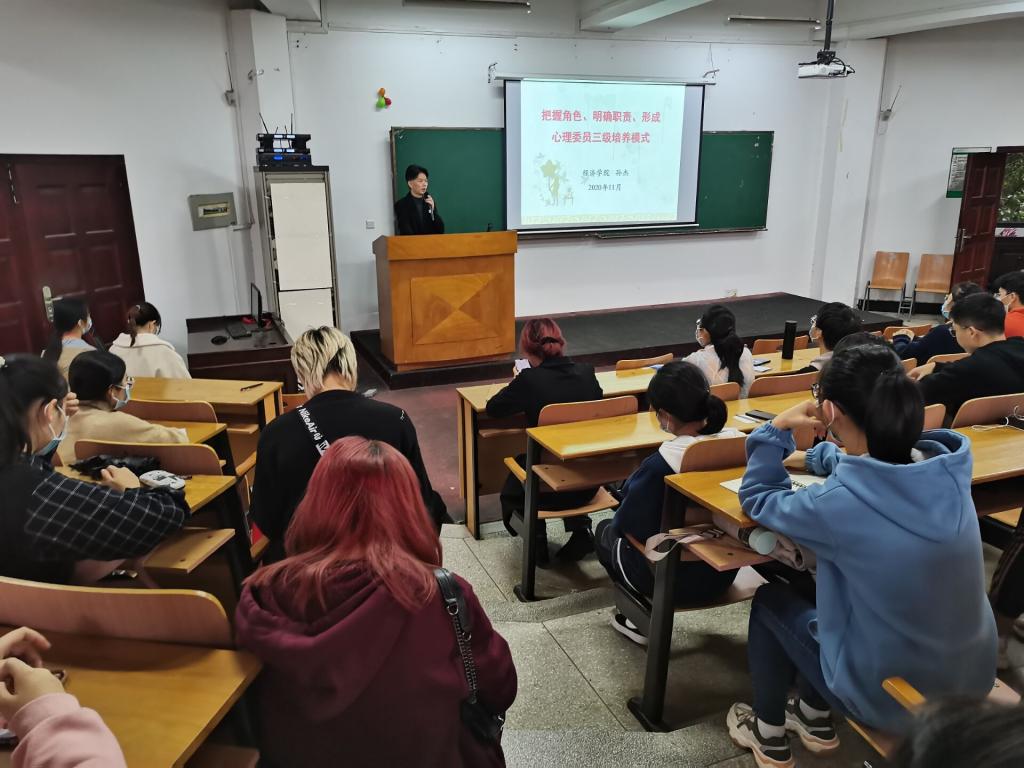 11月19日下午14:30 ,在7号楼T301教室,“化”心家园团辅建设研究小组,以《把握角色 明确职责 形成心理委员三级培养模式》为主题,对全校心理委员开展专题培训 。