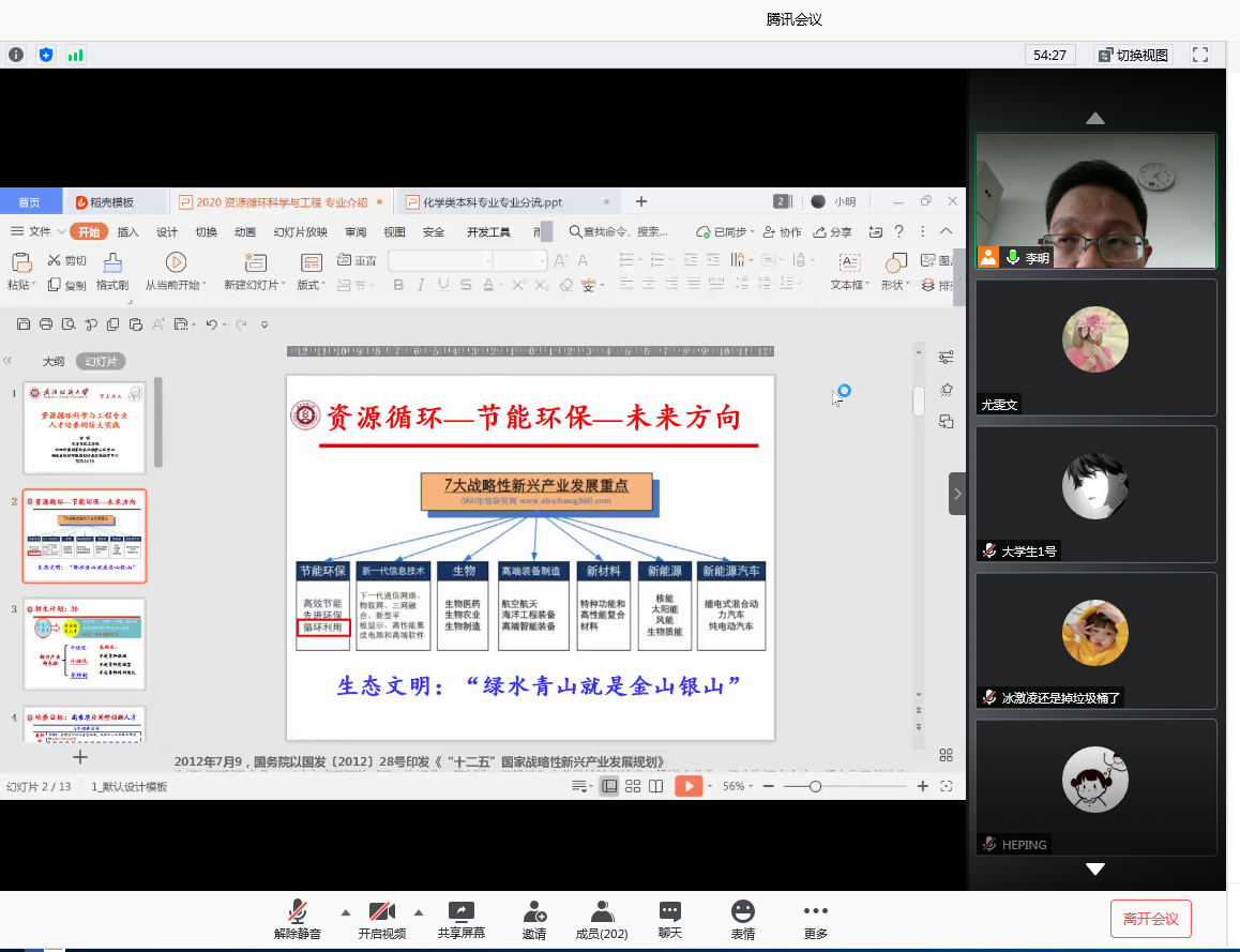 专家学者齐聚“空中”会议室,为2019级学生开展专业介绍讲座,为学生科学选择专业护航。