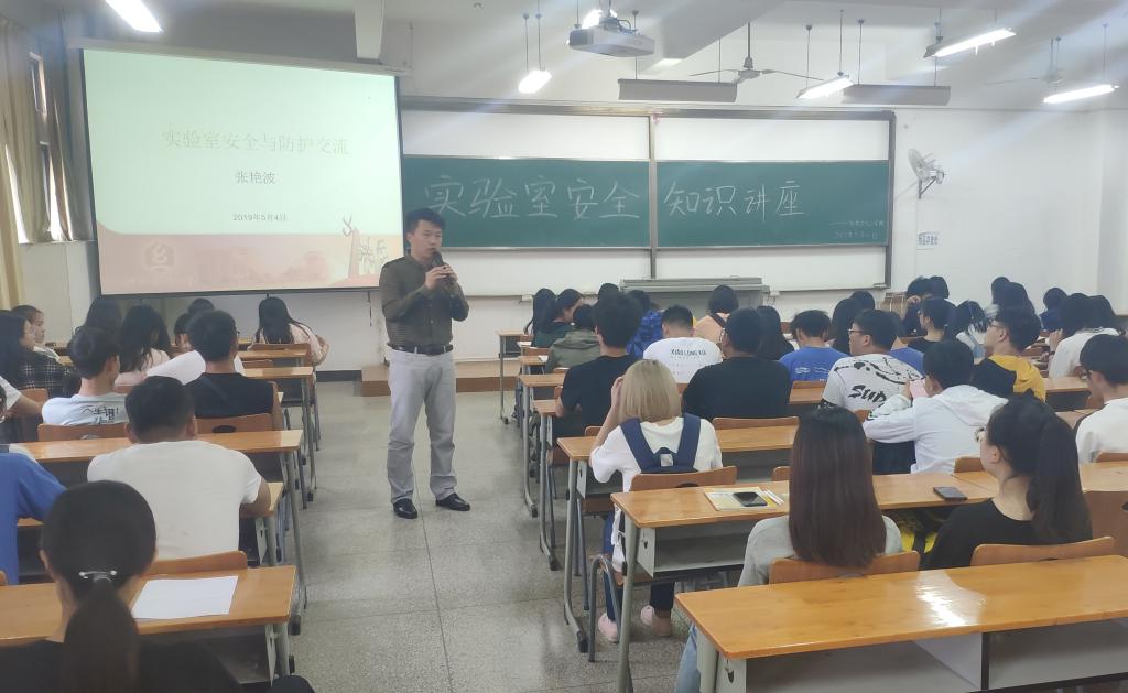 于崇礼楼开展实验室安全知识讲座,旨在提高学生实验室安全意识,传授实验室安全防护知识。本次讲座由学院实验室主任张艳波老师主讲,学院全体学生参加。