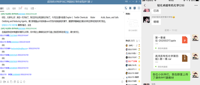 同时,“线上授课模式”对习惯了传统课堂教学的老师们也是一个新的课题与挑战。为了上好课,老师们在学院工作群中加强交流,分享收获,认真学习线上教学模式和流程,尽快熟练掌握如何注册登录、如何建课、学生如何加入课程、师生如何互动、课程如何管理、作业如何布置等,并充分利用中国大学MOOC平台、超星尔雅等校内外慕课资源、QQ直播、腾讯课堂、钉钉视频、学习通等软件,全力准备好课程,绝不降低教学质量。