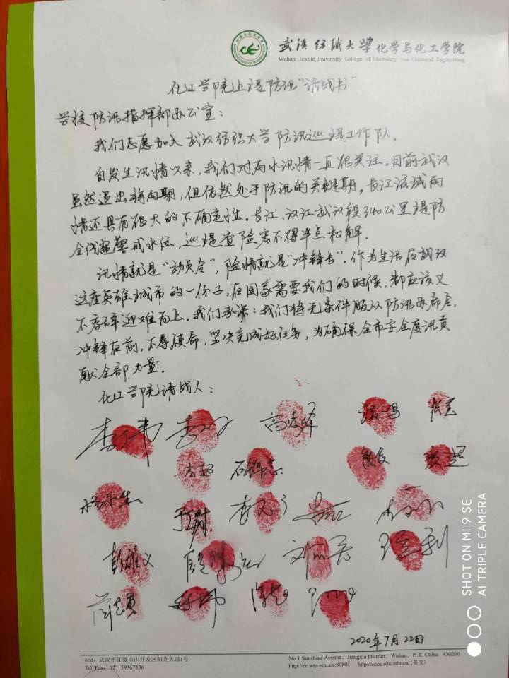 7月23日,一封按满红手印的上堤防汛“请战书”交到了校防汛指挥办公室。