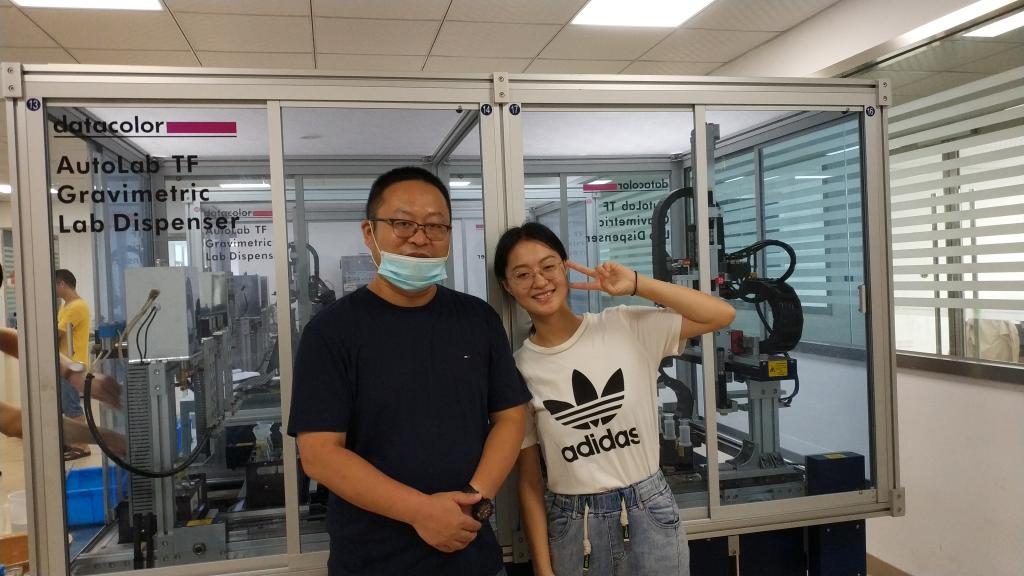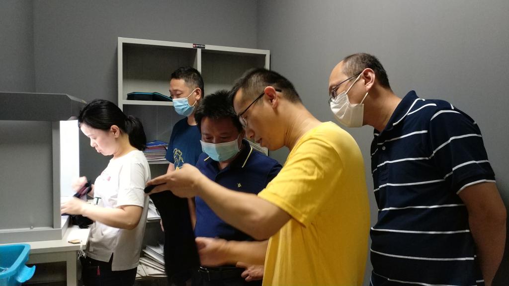 在走访车间深入查看实际运行后,李伟一行与富春染织的2位技术总负责人牧工、王总进行了座谈。双方就生产环节中的系列问题,如产品的快速检测方法、如何降低产品的磷含量、生产全自动化中各环节的无缝对接、如何追溯产品中磷的来源等题,进行了深入探讨和现场技术咨询办公。