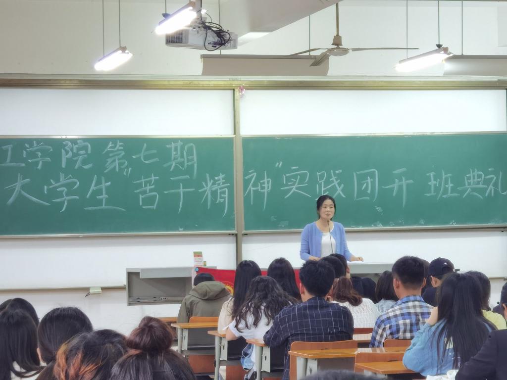 5月23日,在学院第七期苦干团开班仪式上,学院党委副书记尤雯文以《继承革命先烈遗志,做苦干实干的新时代大学生》为全体苦干团成员讲党课,她表示,中国特色社会主义进入新时代,当代大学生生逢其时,也重任在肩,弘扬爱国主义精神,继承革命遗志,不能只停留在口号上,要把自己的人生同民族的命运紧密联系在一起,用苦干实干的行动,奉献国家,不负韶华,无悔青春。