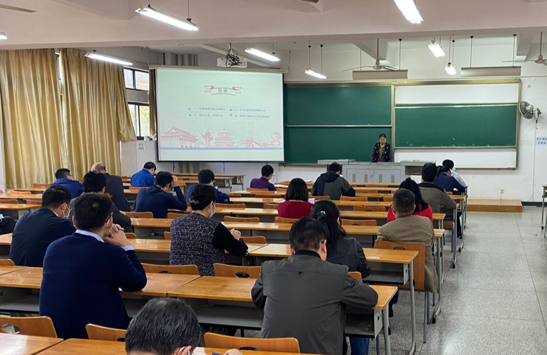 在崇礼楼210教室召开全体教职工大会,学院党委书记樊敏对全体党员干部和教职工开展廉政教育专题党课,并带领大家共同学习《清廉纺大建设实施方案》。
