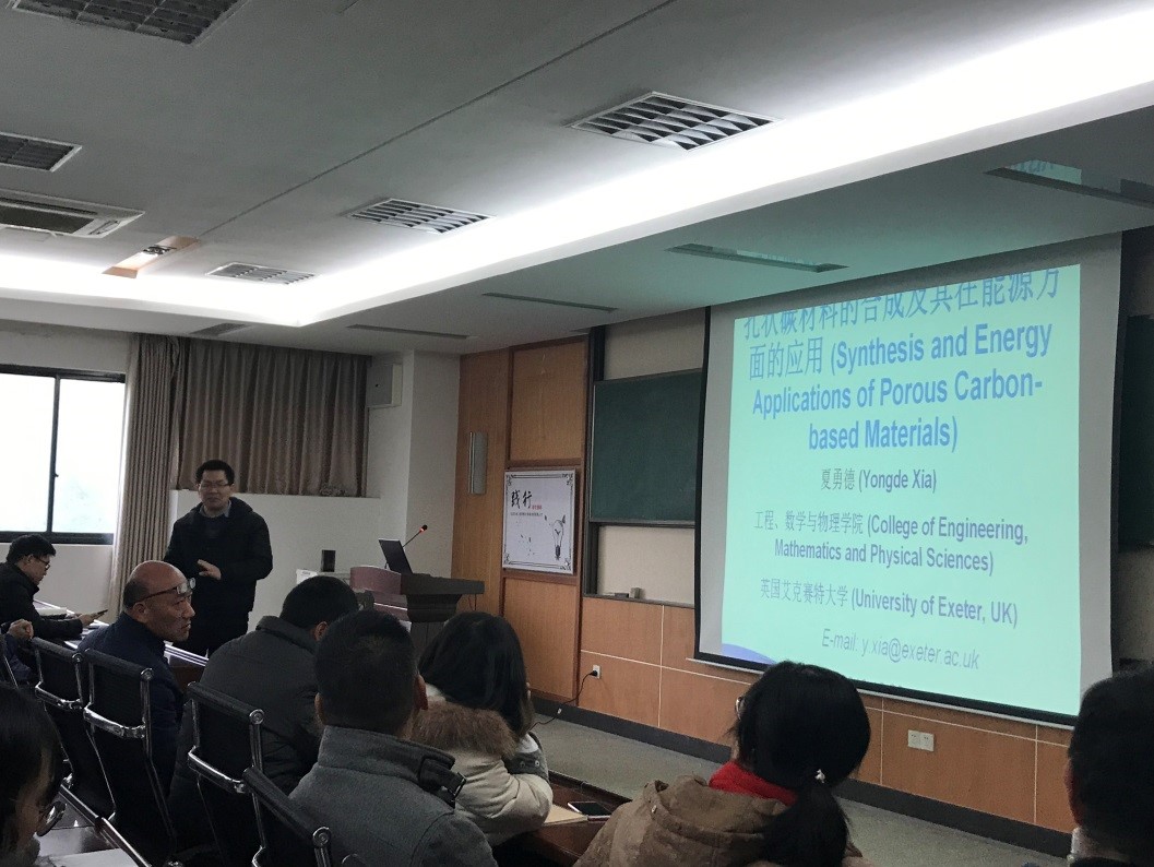 12月20日,应学院邀请,英国埃克塞特大学(University of Exeter)工程、数学和物理科学学院夏勇德教授访问我院,并作了题为“孔状碳材料的合成及其在能源方面的应用 (Synthesis and Energy Applications of Porous Carbon-based Materials) ”的学术报告。本次报告由51暗网 姜会钰副院长主持,来自51暗网 、材料学院和环境学院的相关教师及研究生参加了本次报告。