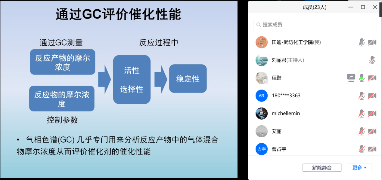 程锴博士主要从事能源与环境领域的多相催化研究,探讨利用化学反应的方法解决人类工业化进程中能源与环境面临的挑战,即能源危机和环境污染问题。此次线上沙龙活动中,他对博士后期间的学术成果《高效氧化物催化剂的可控功能化设计及性能调控》进行了分享,详细介绍了在香港期间开发的一套先进的高性能催化评价系统,并且基于此套系统在干重整和CO氧化反应中氧化物催化剂的活化和性能调控等方向的具体应用。最后,他对该套系统在其他方向的应用进行了展望,并介绍了今后的工作思路。