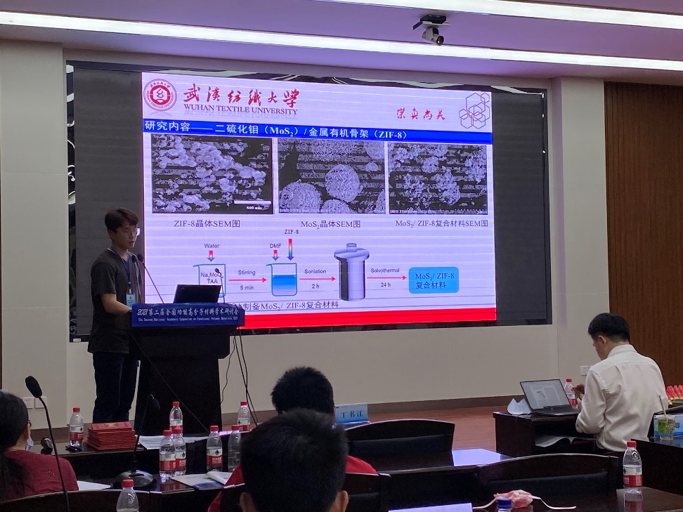 崔莉教授课题组硕士研究生陈行做了题为“层层自组装MoS2/ZIF8制备功能棉织物及其可见光光催化和循环性能研究”的口头汇报,收获了在场专家学者提出的宝贵意见。
