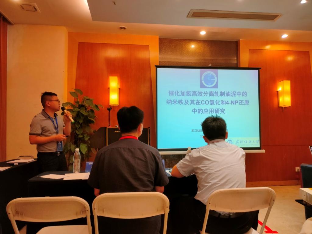 徐爱华教授做了题为“锰氧化物表界面调控及活化过硫酸盐的性能与机理”的报告,程锴博士做了题为“催化加氢高效分离轧制油泥中的纳米铁及其在CO氧化和4-NP还原中的应用研究”的报告,并与会场专家学者进行了深入交流。