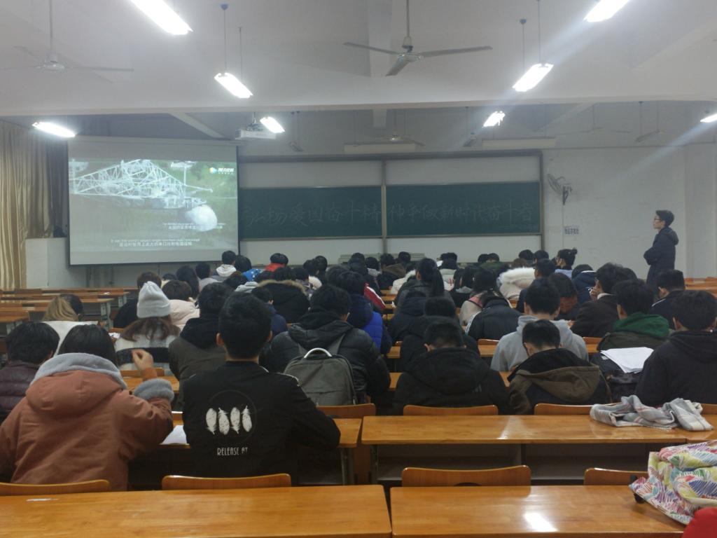 年级大会上,辅导员与同学们一道收看纪录片《一眼万年 “中国天眼”之父南仁东》,纪录片中南仁东燃烧自己最后20多年的人生,带领团队克服重重困难,为国家、为人类完成天文学工程奇迹。南仁东的先进事迹感染着在座的每一位同学,展示了什么是真正的爱国主义奋斗精神。各位辅导员殷切寄语,希望同学们敢于有梦、勇于追梦、勤于筑梦,长本领、强担当,争做新时代的奋斗者,为社会主义建设添砖加瓦。
