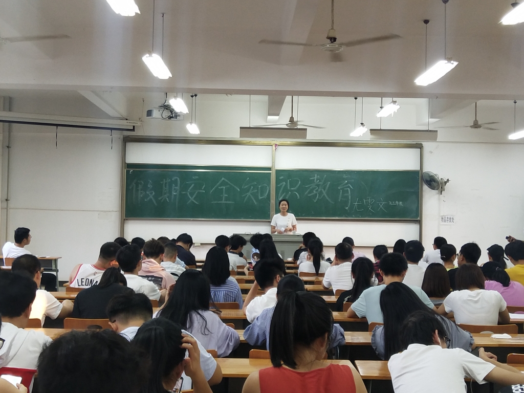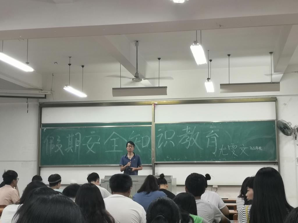 于崇礼楼开展假期安全知识教育。活动由学院党委副书记尤雯文、辅导员谈鹏主持。