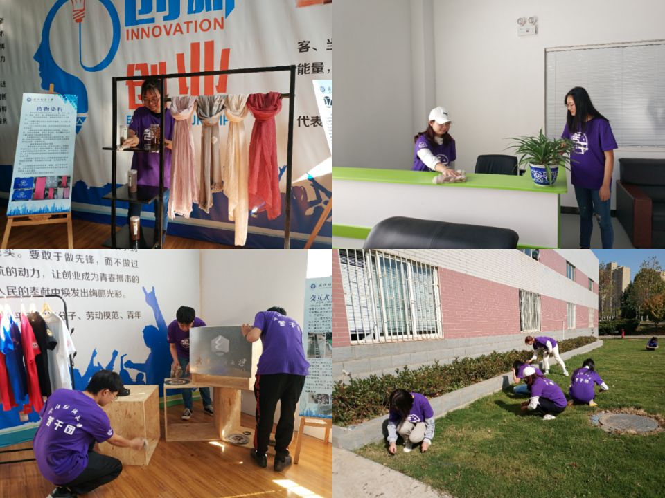 苦干精神实践团利用午休时间,开展美化校园校内志愿服务活动。团成员们自带抹布、拖把、扫帚等工具,既有序分工又团结合作,不仅对创新创业基地室内进行了打扫,做到桌面柜台整洁美观,地面一层不染,各物品按要求严格摆放,还对门口的草坪进行了除杂,清扫了周边地面,焕然一新。