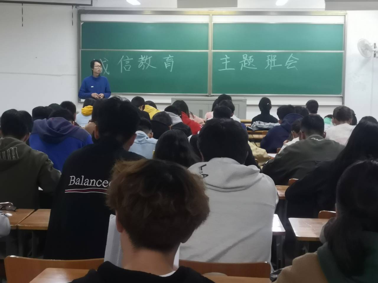 于崇礼楼开展诚信教育活动,各年级以班会、年级大会等形式开展本次主题教育活动,进一步增强学生诚信意识,树立大学生良好形象。