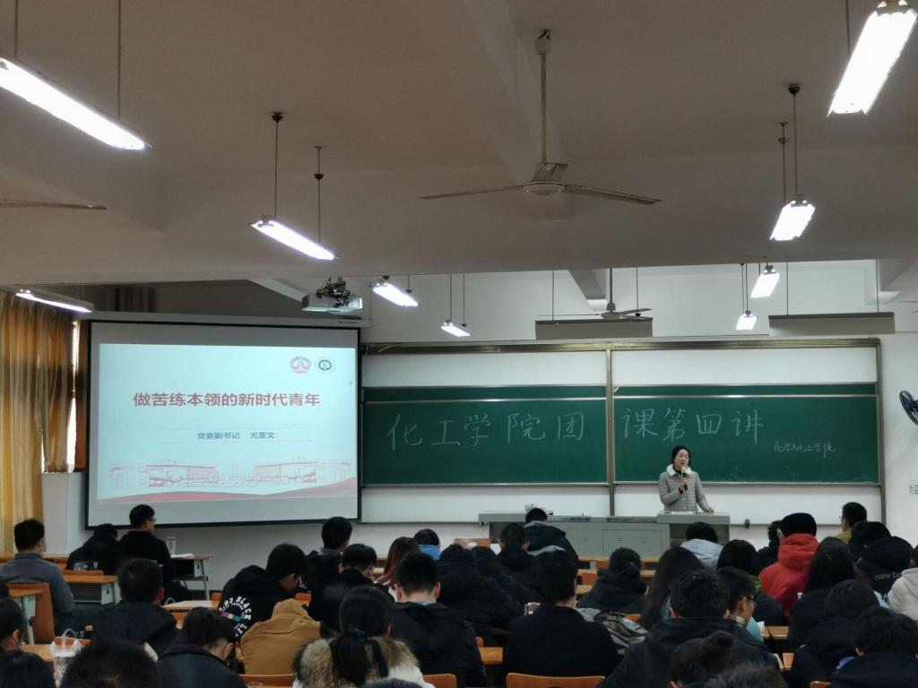 于6-211开展团课教育第四讲活动。学院党委副书记尤雯文为新生团员主讲“做苦练本领的新时代青年”团课。