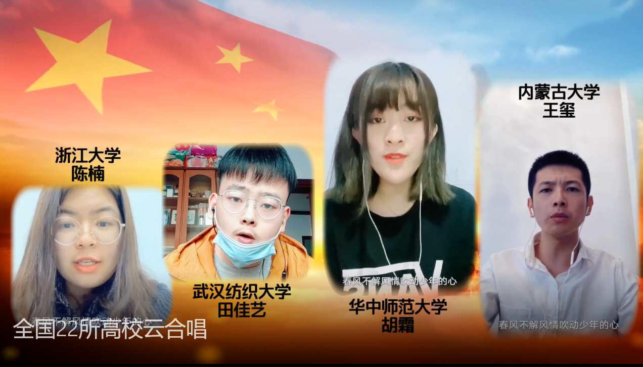 与清华大学、北京大学、北京化工大学、浙江大学、武汉大学、华中师范大学、中国人民大学等22所高校的青年学子们,虽身处全国各地,却心手相依,同频共振。他们以歌为媒,以一场别具特色的“云合唱”,用自己的歌声向祖国祝福,向所有抗疫逆行的勇士致敬。