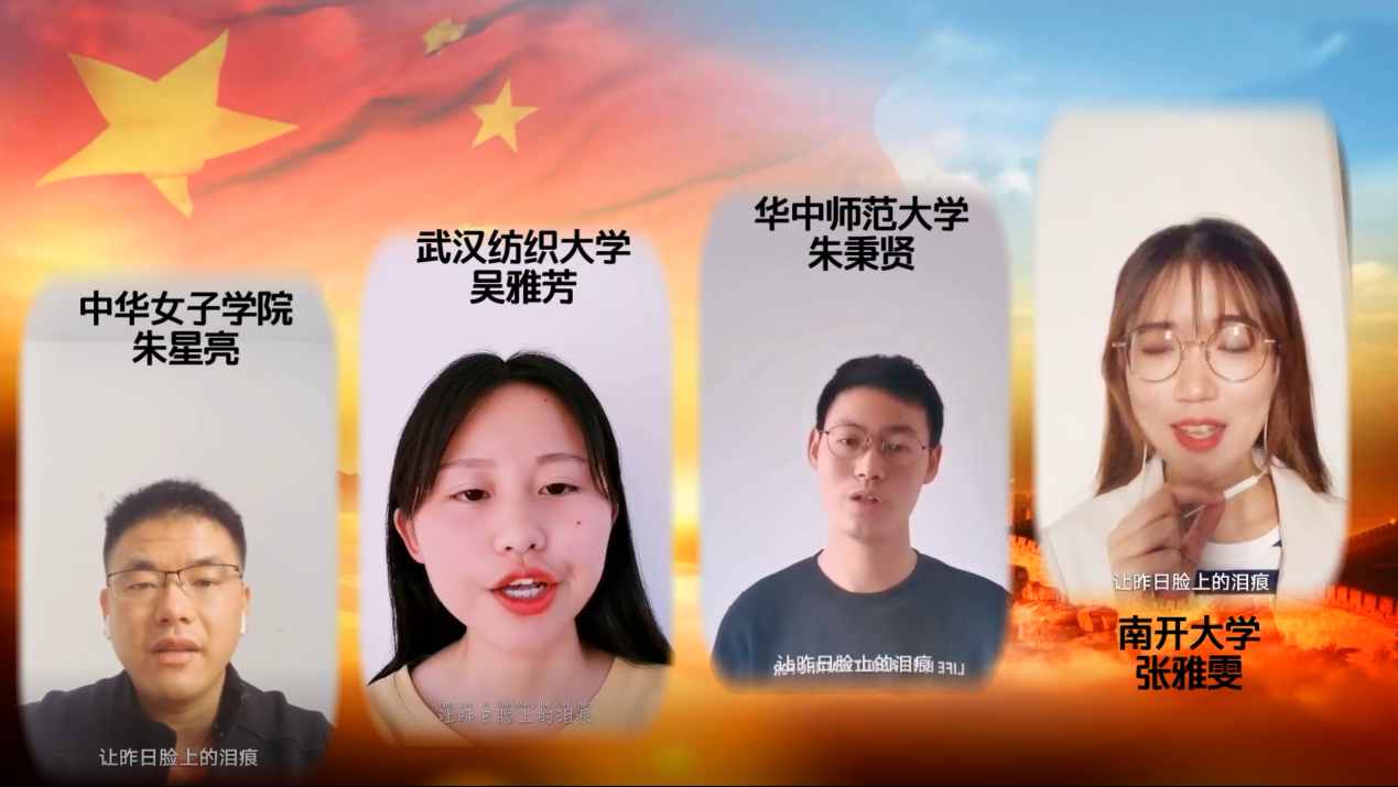 学生会主席周天枭同学表示;另外三位参与录制的吴雅芳、杨茹雨、田佳艺等三位同学,他们表示:“2020年的疫情必定终生难忘,中国力量、中国精神、中国效率让人感动,也更加自信!”