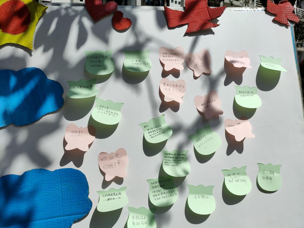 “我的心对你说”活动小站就摆放在1C宿舍楼旁边,吸引了大批的同学参与。同学们拿取放在桌上的“暖心贴纸”,将自己的心里话写在卡片上,然后粘贴在展板上分享给他人。有的同学写自己对生活充满的期待,有的同学写下的是自己感受到的幸福,也有的同学将自己对他好友的美好祝福进行分享……这一些在大家日常生活中的点点滴滴,珍惜蕴含在平淡中的温情,更是给了他们一个向他人表达爱的方式。