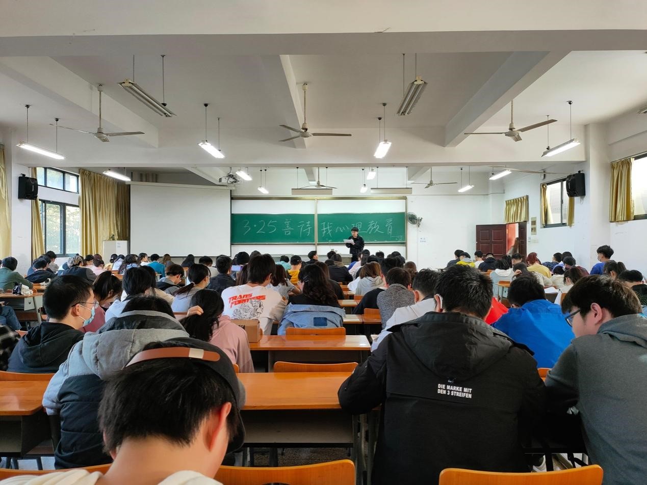 国家高级心理咨询师胡子英老师,针对年级特征,于3月28日下午5点,开展“善爱我”主题班会,对学生们最近心理状况进行了安抚,对于学生考研压力进行舒缓,并且介绍了3·25心理健康一些相关专业知识。她倡导大学生善待自我、关爱自我,怀着温暖、包容的情意欣赏和接纳全部的自己;以积极、豁达的心态体验我们生活中的每一次经历;并以这个态度,善爱他人,善爱自然,善爱社会。