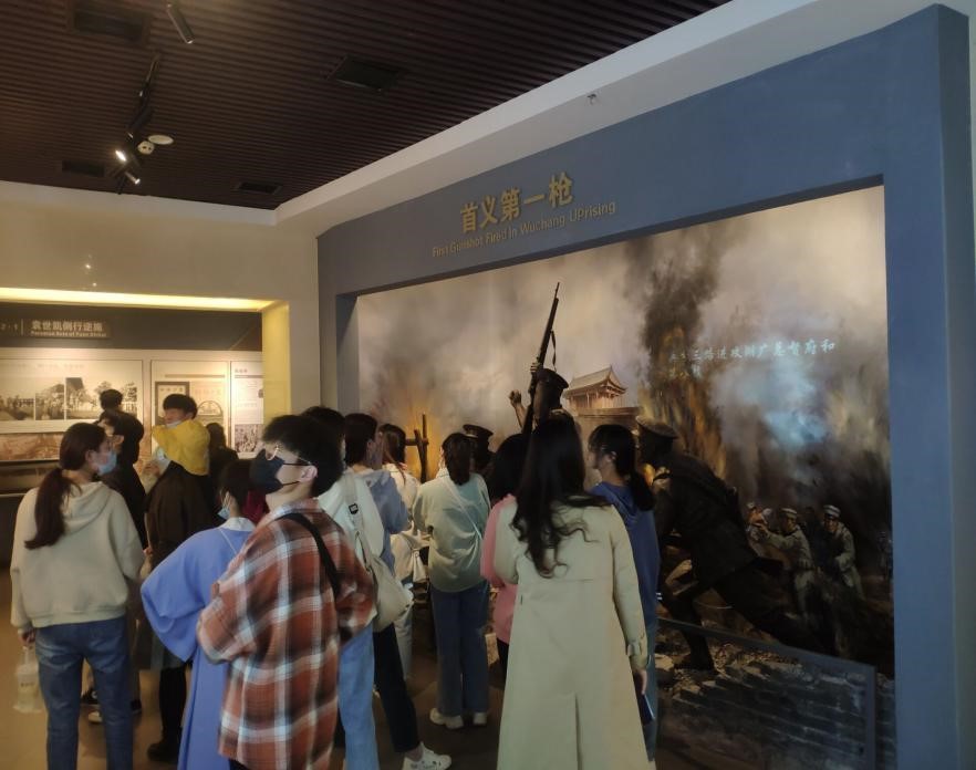 随后,同志们参观了革命先烈纪念馆在纪念馆的小玻璃柜子里,存放的都是当时抗战时用的工具和武器。看看那锈迹斑斑的步枪和大砍刀,同学们深感以前的革命军队是靠着小米加步枪一步一步慢慢挺过来的,这种不畏艰险,舍生取义的革命精神正是激励大家前进的动力。再想到如今的中国的军事科技已居世界前列,各种型号的飞机大炮数不胜数,同学们心中的自豪感油然而生。在大厅的中央还伫立着一块石碑,走近看会发现石碑上刻着不计其数的名字。同学们被这些名字所深深震撼,是他们无所畏惧,是他们忠肝义胆为祖国献出生命才换来了今天的幸福生活。
