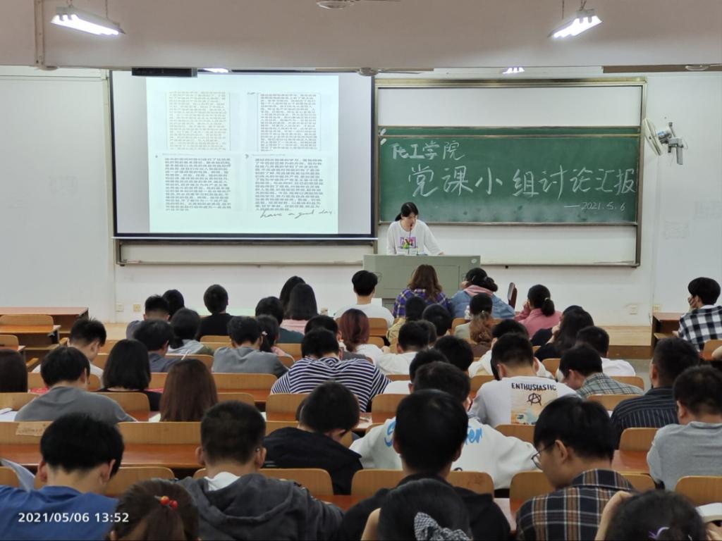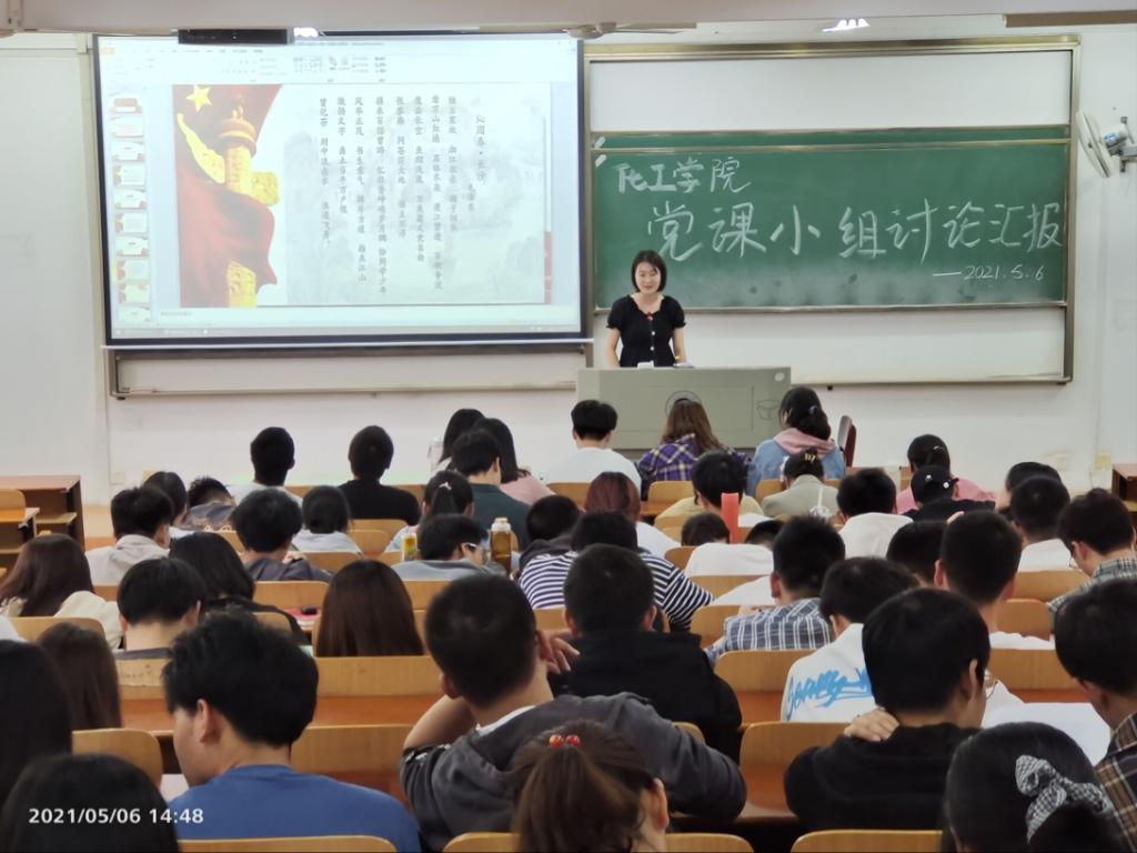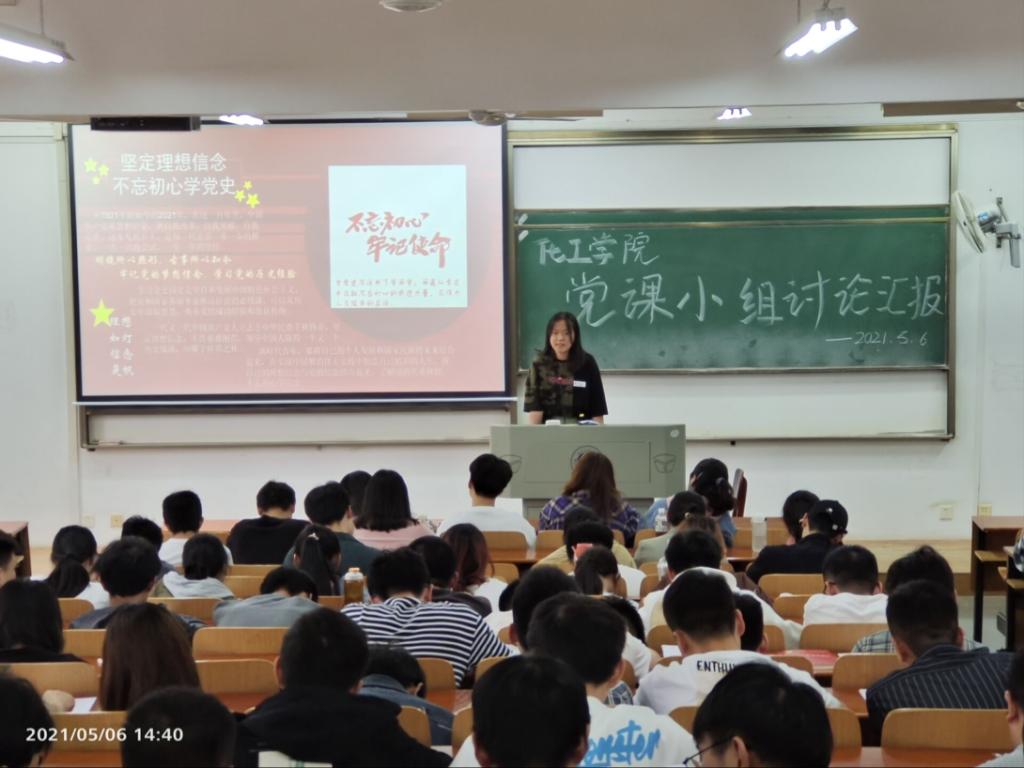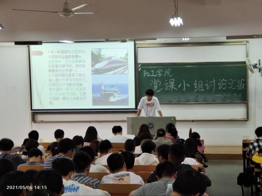 第79期分党校201名学员在03-120教室召开以“学党史、讲党史”为主题的小组讨论汇报演讲。