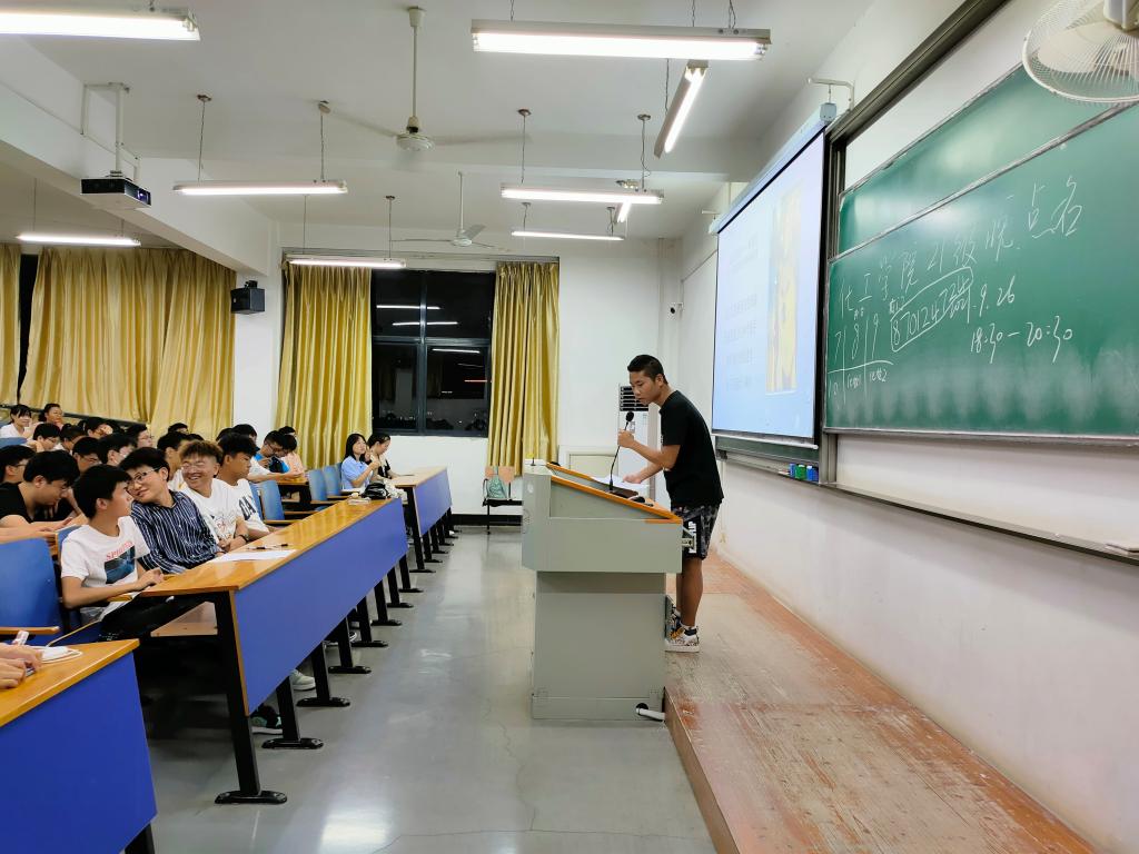 宣讲会在学生会主席蔡荣杰的主持下正式开始。首先,蔡荣杰对学生会的章程、组织架构以及执行机构进行了详细介绍。接下来,9个部门的部长们依次上台对各部门进行了具体讲解。第一个宣讲的部门是办公室。“万事皆办,一心为公”,两位部长热情地向大家说明了办公室的工作内容和招新要求。接下来宣讲的部门分别是班长团和学风部。班长团生动活泼的宣讲风格调动起整个现场的氛围,学风部清晰而有条理的宣讲吸引了众多新生的目光。