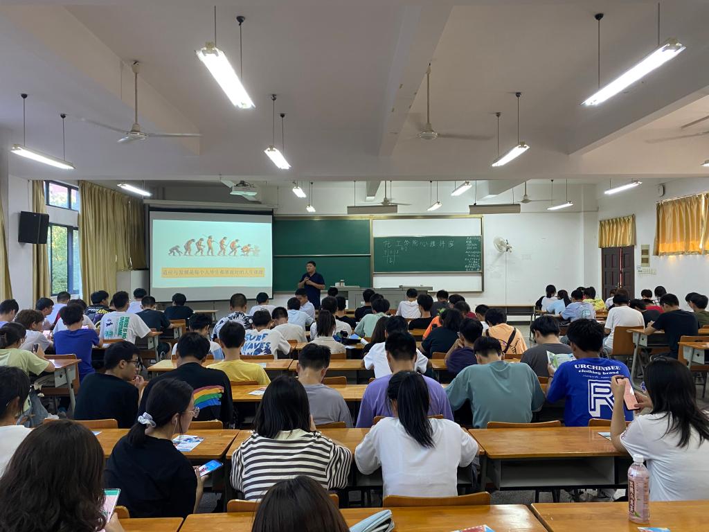 讲座伊始,张万里抛出了第一个问题“什么是适应”引发在座同学的思考,罗列出新生在入学后的过渡期内,会在学习、友情、时间管理、思乡情绪、爱情以及社团参与等方面遇到的困扰及具体表现,并通过举例说明当面对这些困扰时,什么样的反应叫消极适应、什么举动叫做积极适应;其次,他提出了第二问题“什么是发展”,他从心理学的角度,深入浅出地在解释其含义,并详细介绍大学生身心发展的过程,然后讲述了心理社会性发展理论与生命全程发展观,使同学们对心理学有了一个初步的理论认知;随后,他对新生的学习适应、生活适应、人际交往心理适应、科学睡眠、健康生活等给出了积极的建议。同时,对心理异常特别是抑郁发作的一些表现进行了描述,建议通过努力资助、积极互助、必要时主动求助等方式帮助自我建立健康的心理状态。