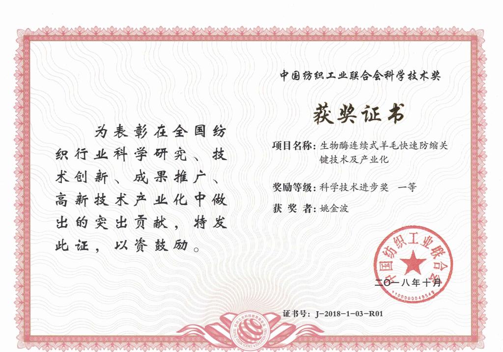 生物酶连续式羊毛快速防缩关键技术及产业化