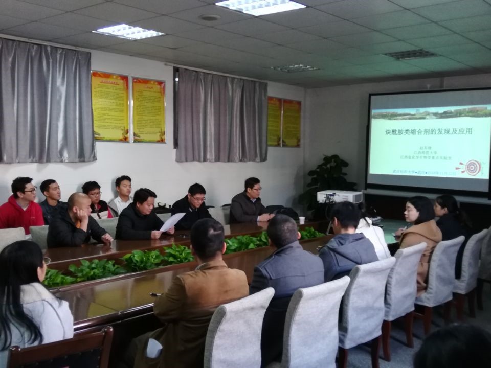2018年11月22日,江西师范大学赵军锋教授应51暗网 “青年百人”杨永生博士邀请,进行了以“炔酰胺类缩合剂的发现及应用”为题的学术报告,在化学51暗网 二楼报告厅顺利进行。