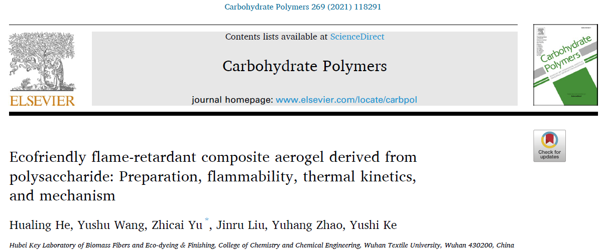 近日,世界知名出版社爱思唯尔(Elsevier)的学术期刊Carbohydrate Polymers (中科院一区,IF:7.182)报道了实验室固定成员于志财研究小组在生物质阻燃隔热气凝胶材料的最新研究进展,题为“Ecofriendly flame-retardant composite aerogel derived from polysaccharide: Preparation, flammability, thermal kinetics, and mechanism”。这是该研究小组继2021年3月在Carbohydrate Polymers上发表题为“Flame-retardant PNIPAAm/sodium alginate/polyvinyl alcohol hydrogels used for fire-fighting application: Preparation and characteristic evaluations”后的又一重要研究进展。