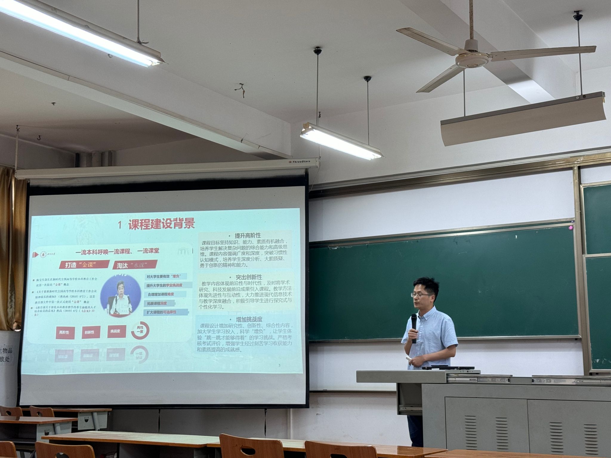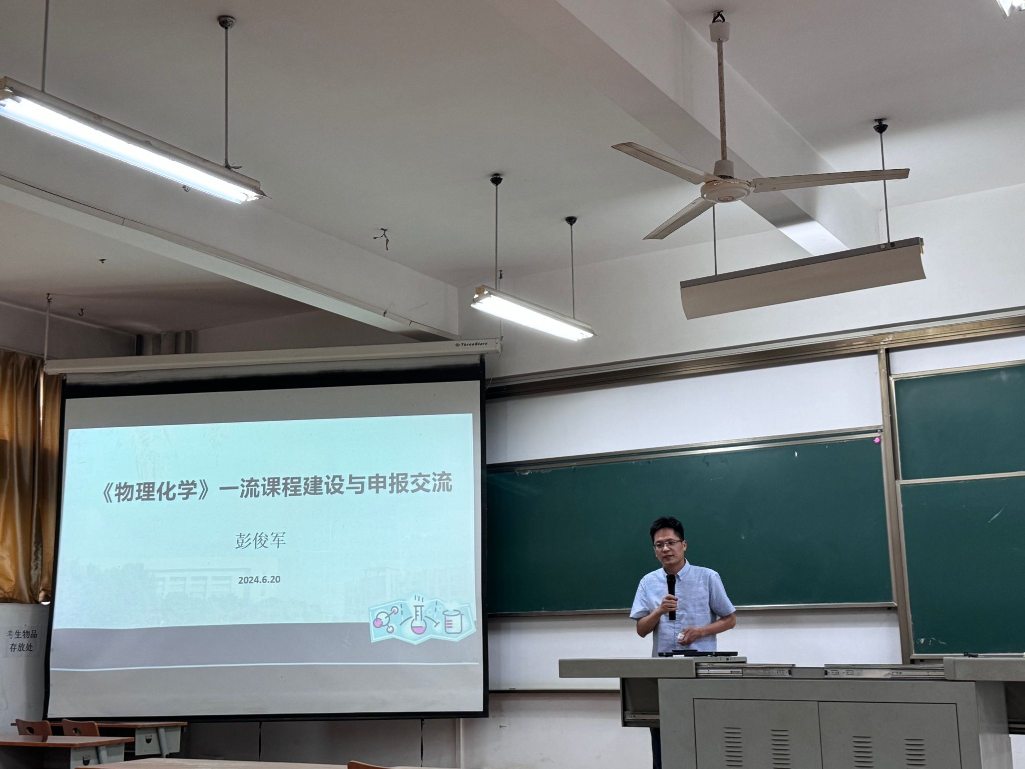 于06-222教室开展《物理化学》一流课程建设与申报经验交流会,讲座由院党委书记杜勇主持,学院全体教职工参与会议,大学化学中心主任彭俊军副教授进行了主题分享交流。