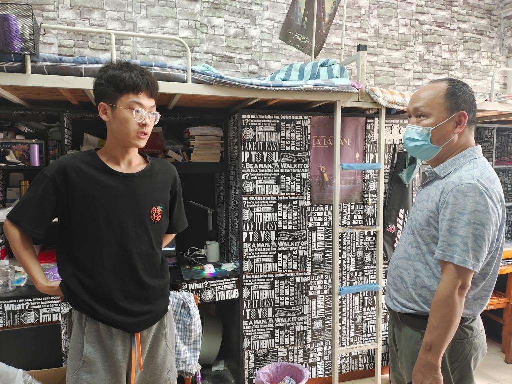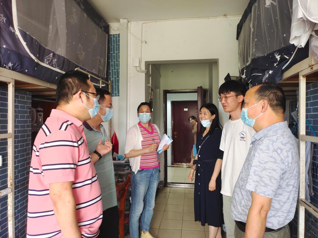 班子成员携辅导员深入学生宿舍,详细了解毕业生学习、生活、就业和思想情况,检查宿舍安全工作,加强毕业生防疫安全教育,引导毕业生文明离校。