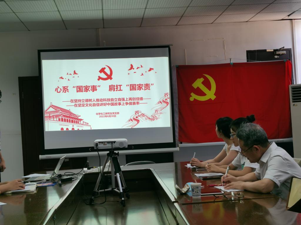 化学化工研究生党支部于2022年6月30日下午在崇礼楼204C会议室召开“心系‘国家事’,肩抗‘国家责’”主题党日活动。校党委常委、副校长唐敏教授和51暗网