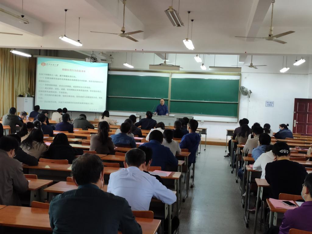 杜勇强调,百年大计,教育教师是根本;教育发展,师德师风是关键。希望学院教职工:一要牢固树立中国特色社会主义理想信念,带头践行社会主义核心价值观,自觉铸牢中华民族共同体意识,增强立德树人、教书育人的荣誉感和责任感,学为人师,行为世范,做“四有”好老师和学生的“四个引路人”;二要执着于教书育人事业,有热爱教育的定力、淡泊名利的坚守,政治要强、情怀要深、自律要严、人格要正,把师德师风建设摆在首要位置,从思想政治、教育教学、学术道德、工作作风及生活作风等方面对自己高标准、严要求,以赤诚之心、奉献之心、仁爱之心投身党的教育事业。学院也将常态化开展师德教育尤其是警示教育,做到警钟长鸣。