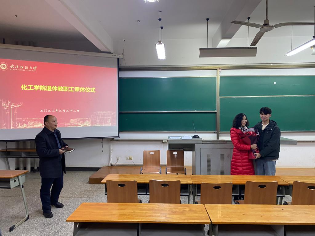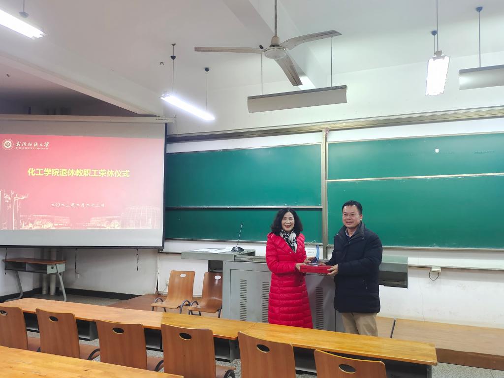 于崇礼楼210教室为2023年2月退休的戴旭红同志举行光荣退休仪式,学院全体教职工参加本次活动。