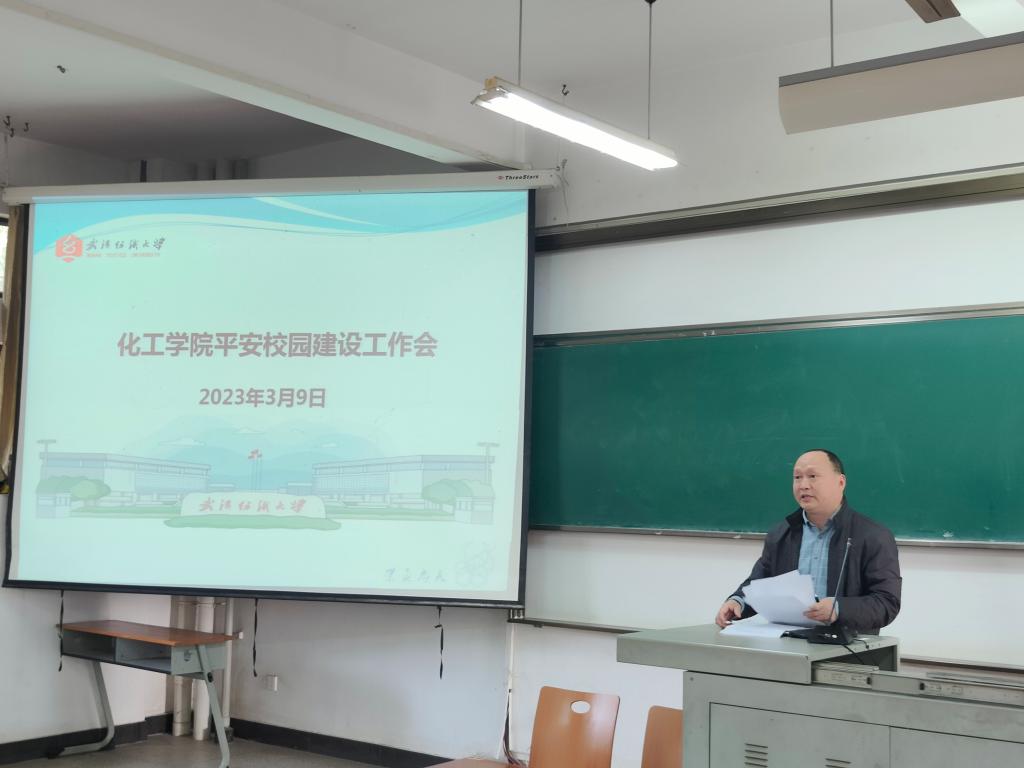 在崇礼楼210教室召开2023年平安校园建设工作会,全体教职工出席会议,院党委书记杜勇主持会议。