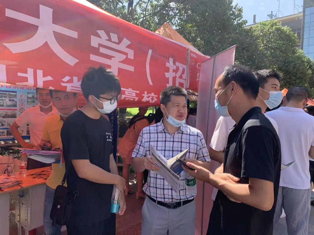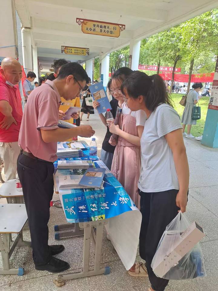 6月25日至6月30日,人事处负责人、审计处负责人、学院班子成员、专业老师、实验室老师等组成8支招生宣传队伍,赴汉阳一中、咸宁地区各生源中学和招生咨询点开展招生宣传,为广大考生和家长提供咨询服务。此外,还有4名专业老师参与全省招生宣传。