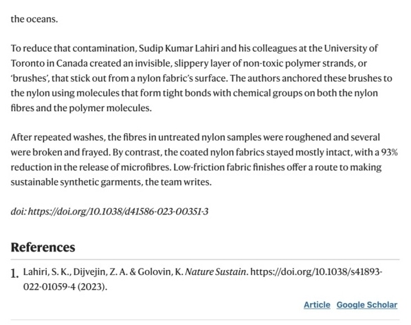据文章显示:为减少海洋纺织织物污染,Sudip Kumar Lahiri团队研发制作了一层光滑无毒的聚合物线,即“神奇的小刷子”。同时,使用尼龙纤维和聚合物中的化学基团形成紧密结合的分子将“刷子”固定在织物上。反复洗涤后,拥有该涂层的织物微纤维释放量减少93%,为保护海洋环境和可持续服装制造提供了全新的路径。