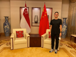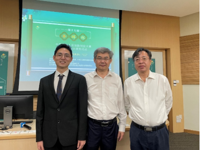 与时任中国驻新加坡大使馆教育处康凯参赞(中间),中国驻新加坡大使馆教育处韩骏公赞(右)合影留念