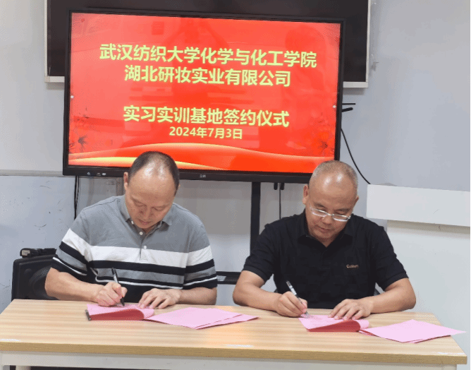 与湖北研妆实业有限公司实习实训基地签约揭牌仪式成功举行,学院党委书记杜勇、化妆品系主任吴剑虹、化妆品专业老师洪少力、毕惠婷共同出席了本次签约仪式。