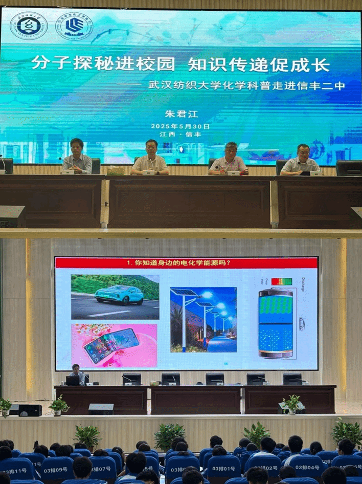 5月30日上午,值此第九个“全国科技工作者日”之际,考察团将交流活动延伸至校园。在信丰二中,朱君江院长为师生们带来了题为《分子探秘进校园 知识传递促成长》的科普讲座,与高一学子就高中阶段的学习和未来学习规划进行了交流,鼓励他们积极学习,今后更好地为国家作贡献;彭俊军主任作了《揭秘电化学能源世界》的主题报告,穿插讲解学校能源方面新突破。两场讲座内容前沿、深入浅出,有效拓宽了学生们的科学视野,激发了探索兴趣,受到师生热烈欢迎,信丰二中党总支书记廖铭清接待了考察团一行。