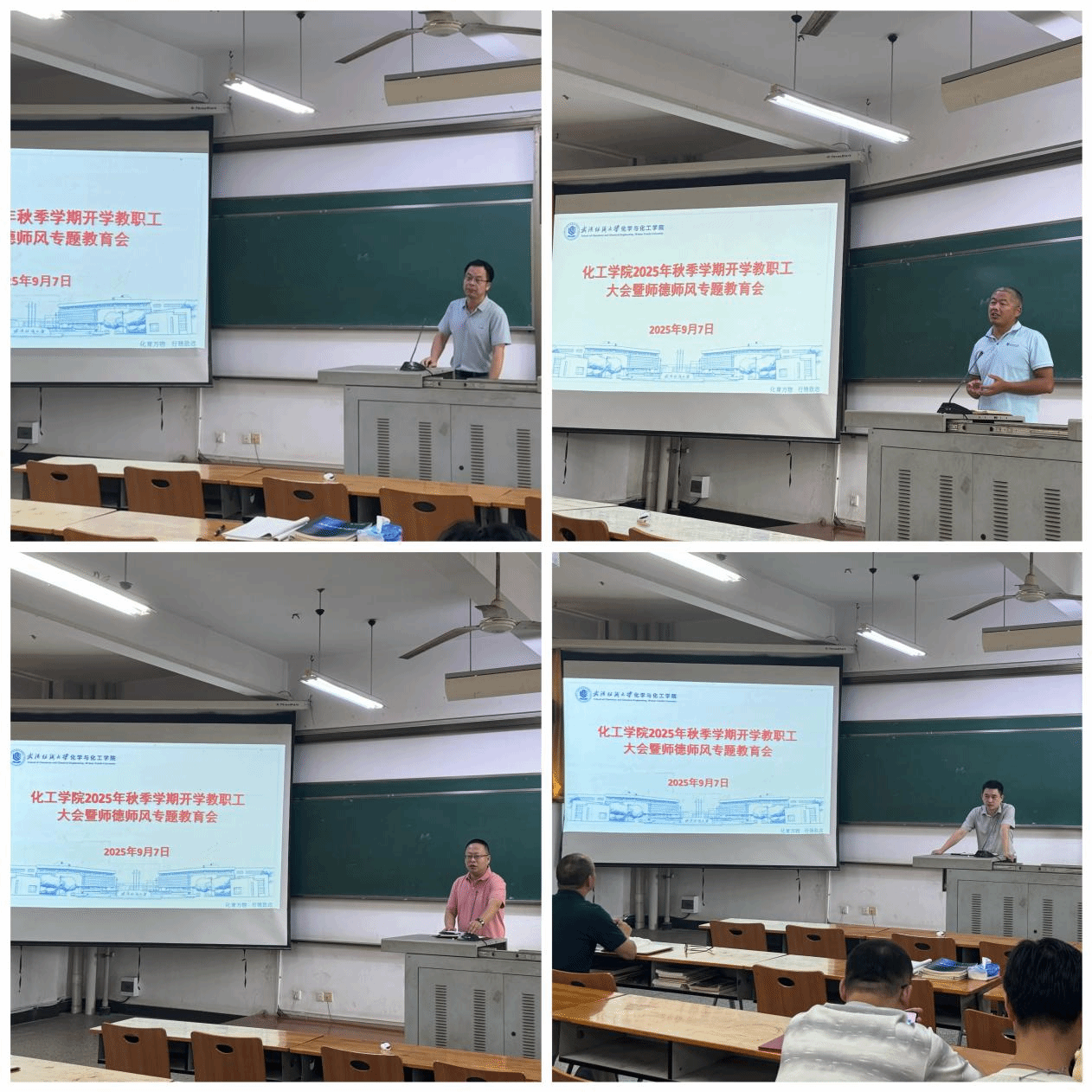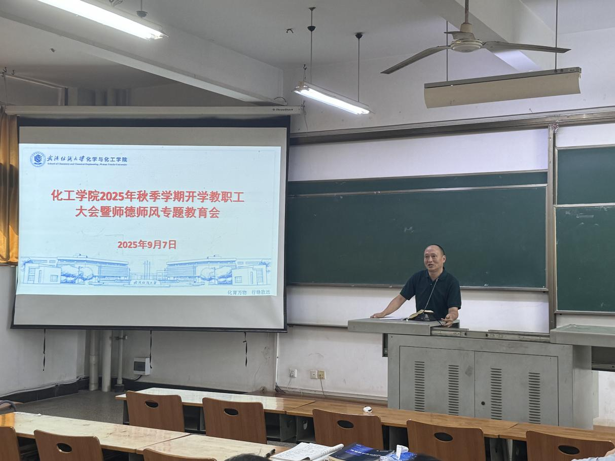 学院党委书记杜勇指出,新学期全院教职工要聚焦六个方面的重点工作:一是要坚守师德师风,牢记育人使命,以习近平新时代中国特色社会主义思想为指导,贯彻党的教育方针,落实“为党育人、为国育才”,结合典型案例深化警示教育,关注学生与实验室安全,落实请假制度,拒绝违规活动,坚守师德底线。二是要筑牢意识形态安全防线,不断增强政治敏锐性和政治鉴别力,强化理论武装,站稳政治立场,规范教学与科研行为,严格课程思政融入,严禁课堂发表无关政治言论,坚持正确科研方向,恪守学术道德。三是严守安全底线,确保学院稳定,安全稳定是学院发展基石与首要任务,要树牢“安全第一”思想,压实责任到人,深化学生安全教育,关注思想心理,加强实验室隐患排查与安全管理,做好校园综合治理,提升师生应急能力,营造安全和谐校园。四是加强学生工作,助力学生成长,全体教职工要关心学生成长,参与思政与日常管理,辅导员、班主任加强沟通,解学生之难,专业教师注重学业与职业规划引导,此外,加强社团建设与校园文化活动,促学生素质全面提升。五是聚焦教学质量,提升教学水平,教学是学院中心工作,提高质量是永恒主题,推进课程改革创新,融入行业前沿知识,探索多元教学模式,加强实践教学,拓展实习基地,同时,做好课程考核评价,建立科学体系,引导学生提升能力。六是强化科研创新,服务社会发展,全院教职工要瞄准国家战略与化工难题开展有组织科研,依托团队整合资源,加强平台建设管理,注重成果转化与产学研合作,提升学院影响力,尽早启动2026年国家基金项目申报撰写。