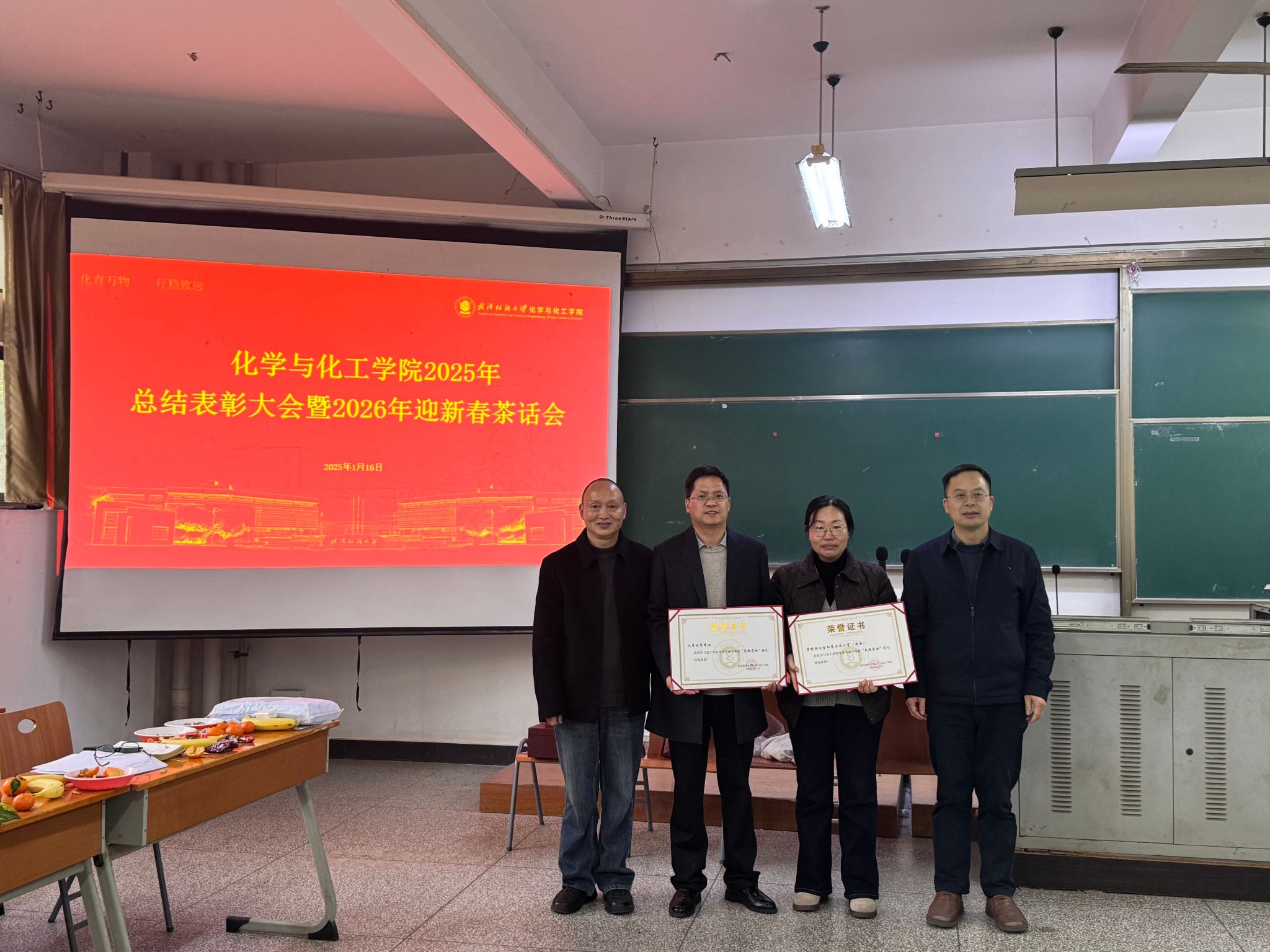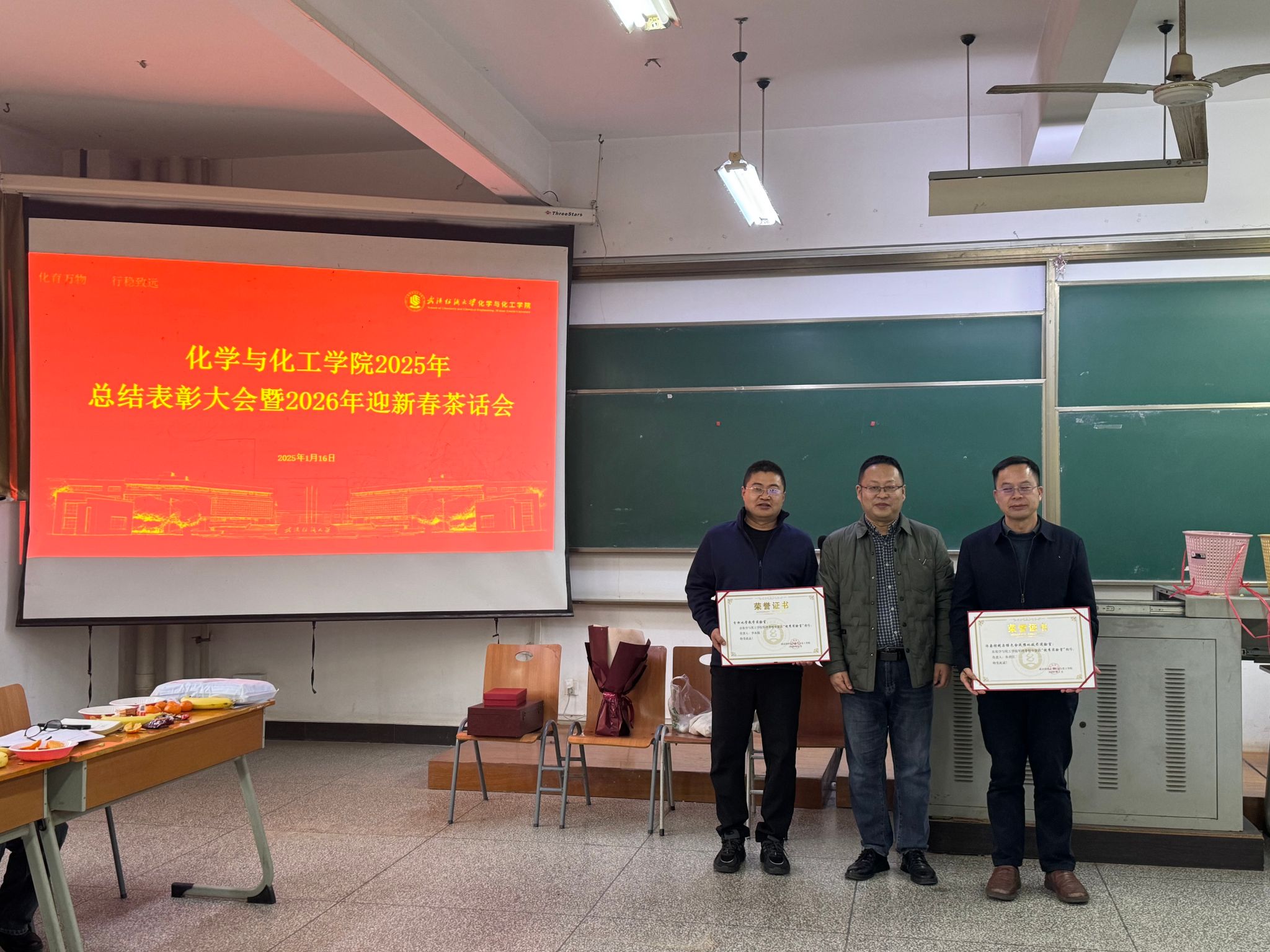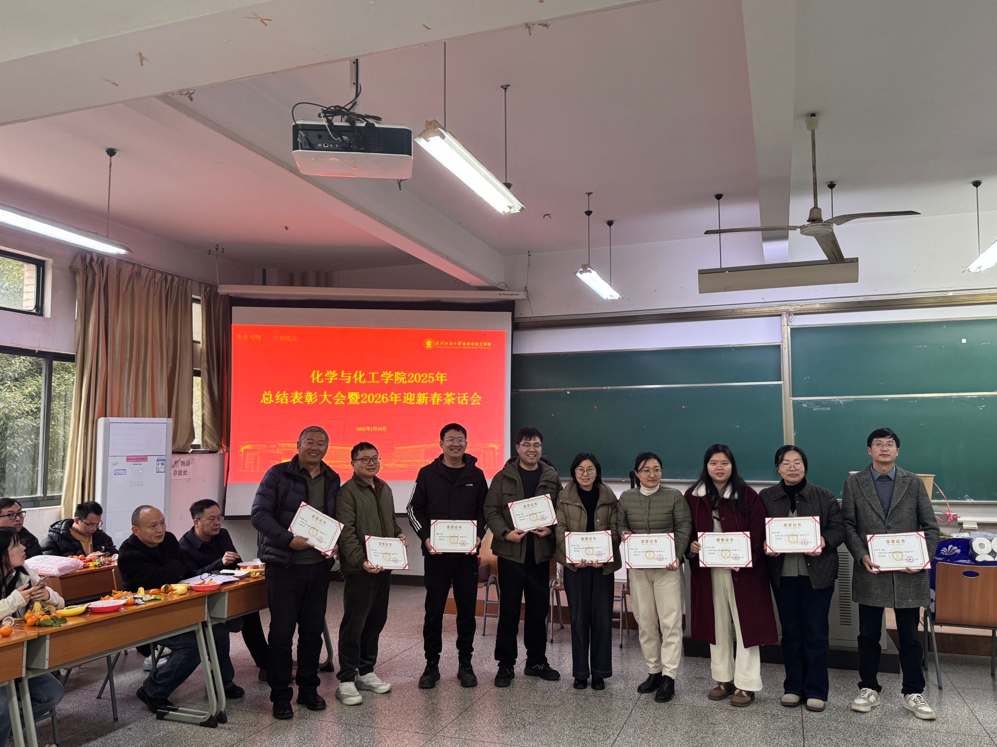 2025年总结表彰大会暨2026年迎新春茶话会在崇礼楼220教室召开。学院全体教职工欢聚一堂,辞旧迎新、共话发展。会议全面总结2025年学院各项工作成效,传达学校重要会议精神,部署2026年重点任务,表彰先进典型,并通过丰富多彩的茶话会活动营造喜庆祥和的新春氛围。