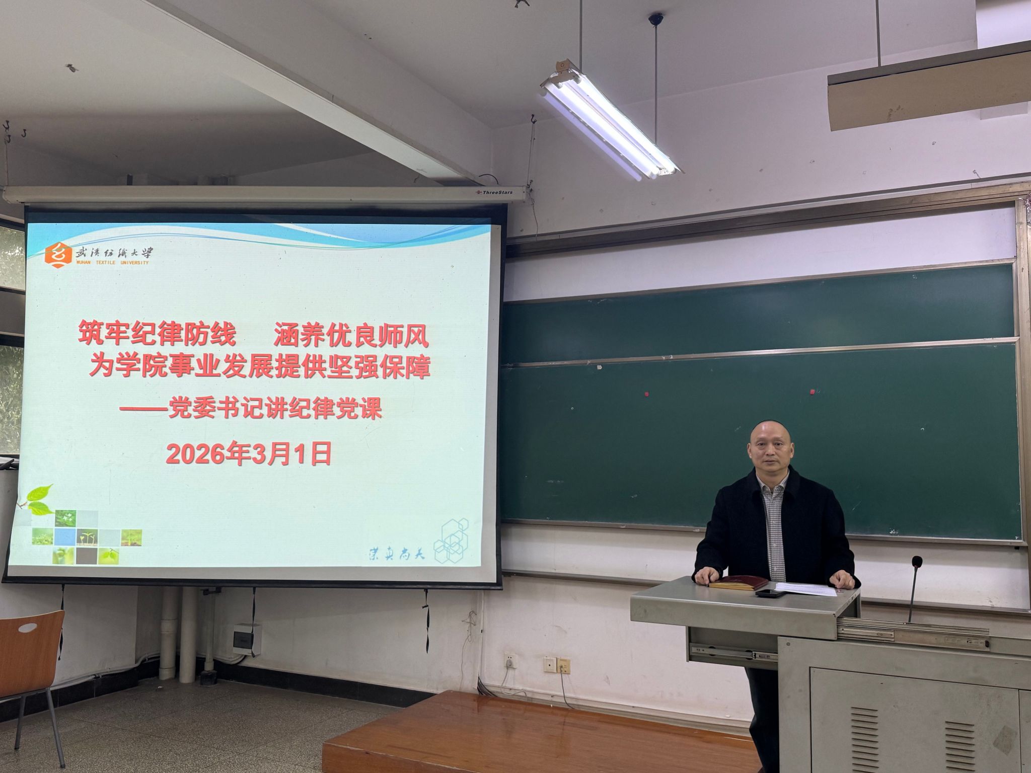 最后,党委书记杜勇作总结讲话,并以“筑牢纪律防线 涵养优良师风---为学院事业发展提供坚强保障”为题,为全体教职工上了一堂深刻的纪律党课。党课结合2026年春节前后发生的典型案例展开警示教育:一是四川大学教师王竹卿师德师风、学术不端案例,其存在伪造篡改实验数据、违规套取科研经费、师德失范等问题,最终受到降低岗位等级、停止研究生招生资格等处理,警示全体教师坚守学术底线、涵养优良师风;二是湖北襄阳宜城烟花爆竹爆燃惨痛事故,该事故造成12人遇难,其中包含5名未成年人,警示全体教职工深刻汲取安全教训,时刻绷紧安全之弦,坚决守住安全底线;三是18个科研经费违规典型案例,涵盖申请书代写、抄袭剽窃、违规套取等多种违规情形,警示大家严守科研经费管理规定,杜绝违规违纪行为。