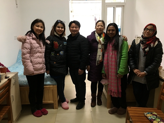 党政领导班子成员一行深入走访留学生宿舍,并送去了新春的慰问。