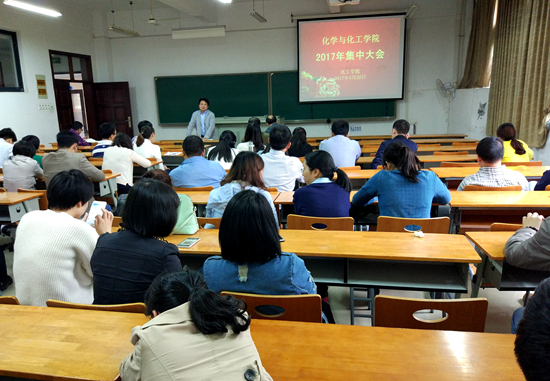 会上,学院领导就近期各自分管的工作进行布署。权衡副院长就学院科研工作进行了强调,李明副院长就实验室安全、化学竞赛、校园贷危害等方面工作进行了安排。