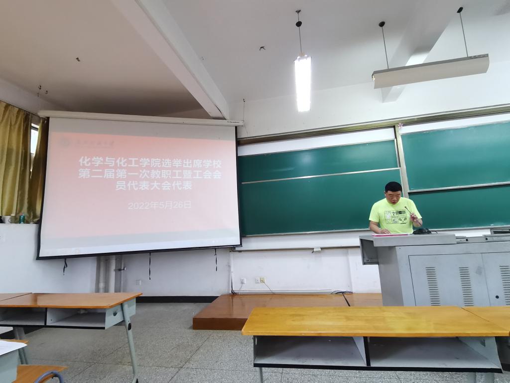 在崇礼楼210教室召开全体教职工大会,选举产生出席学校第二届教职工暨工会会员代表大会的参会代表,会议由分工会主席陈富偈主持。