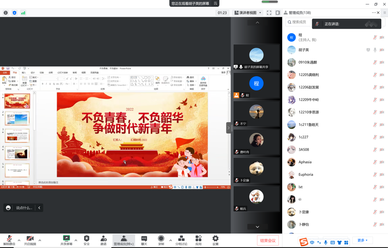 20级辅导员胡子英开展了以“不负青春不负韶华争做时代新青年”为主题的线上青春团课。